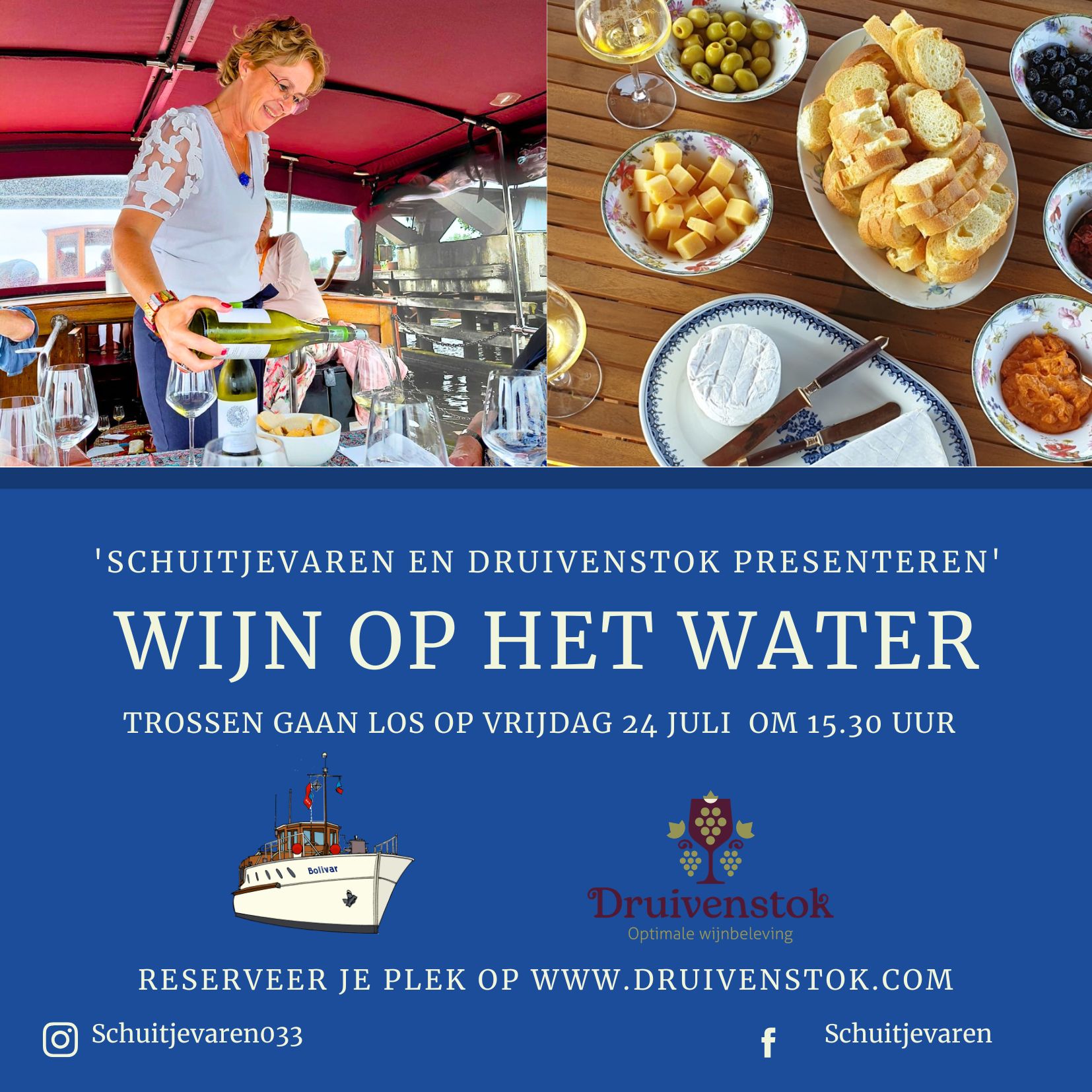 In de zomer van 2022 gaf ik twee heerlijke wijnproeverijen aan boord van de Bolivar – een karakteristiek directievaartuig uit 1928, een varend monument met stijl en geschiedenis. Destijds voeren we door de grachten van Amsterdam, maar nu gaan we voor de tweede keer (vorig jaar was de aftrap) voor een ander heel mooi decor: de prachtige Eem in Amersfoort en omgeving.